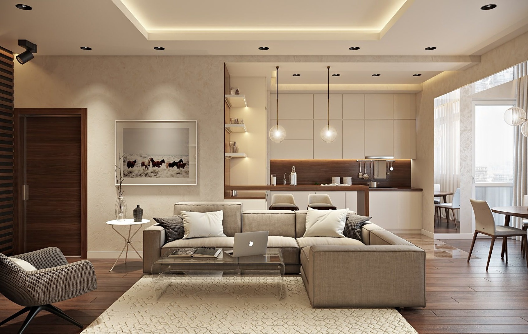 Финишная отделка. Технология отделки зависит от выбранных материалов. Для стен могут использоваться обои, декоративная штукатурка, краска. Для пола — линолеум, паркет, ламинат, дерево. Для потолка — краска, натяжное полотно, подвесные конструкции.